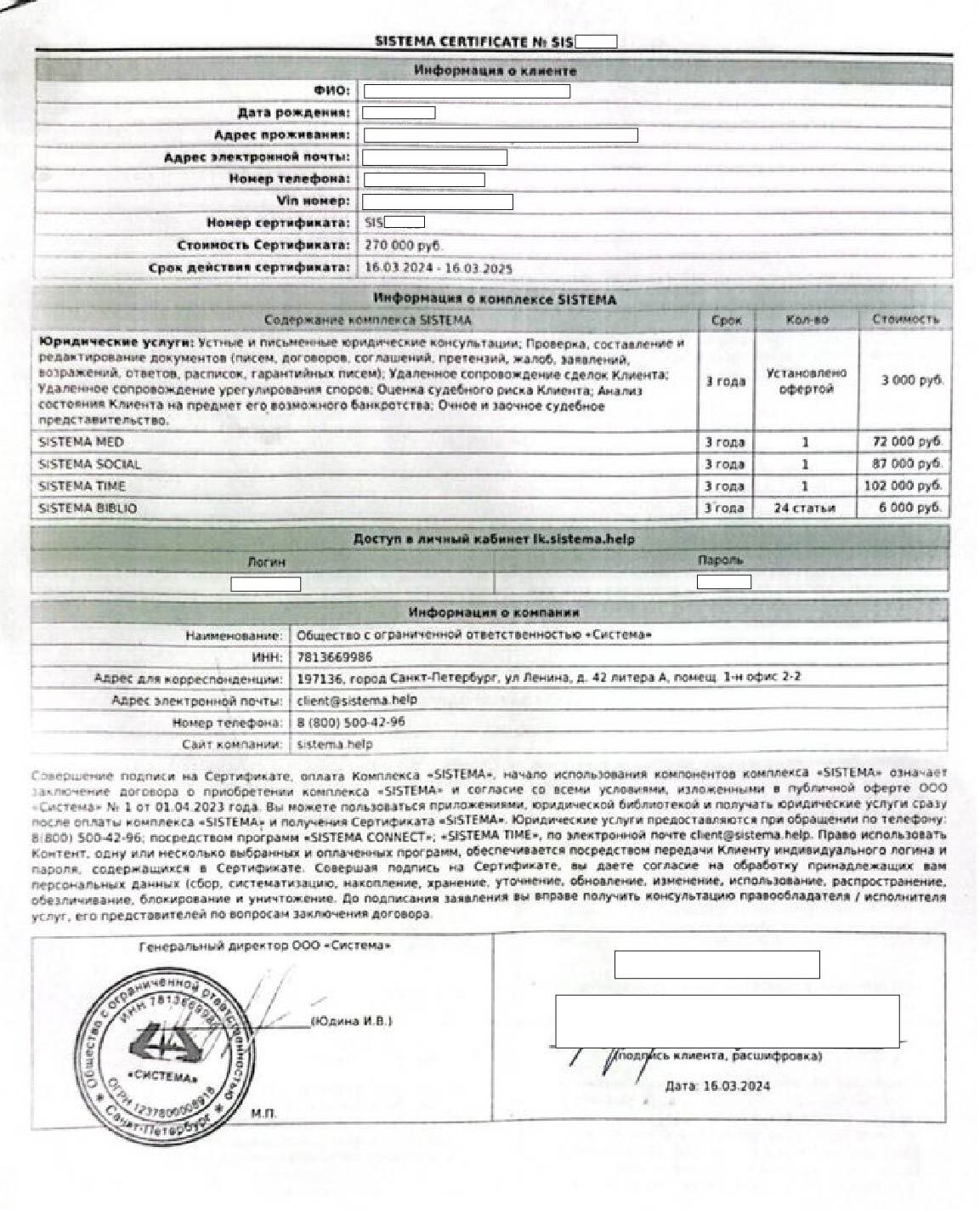 3. SISTEMA SOCIAL (сроком на 3 года и стоимостью 87000 рублей);